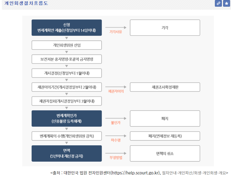 개인이 지속적인 수입이 있는 경우에 3~5년에 걸쳐 일정한 금액을 변제를 한 경우 나머지 채무를 면제 받을수 있는 제도입니다.