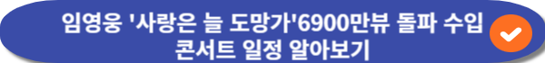 임영웅은 작년에 '사랑은 늘 도망가'로 6900만뷰 돌파 수입했고 콘서트 일정에 대한 정보를 남겨드리니 올해도 비슷한 시기 일것이라고 보고 있습니다.한번 확인해보시기 바랍니다.